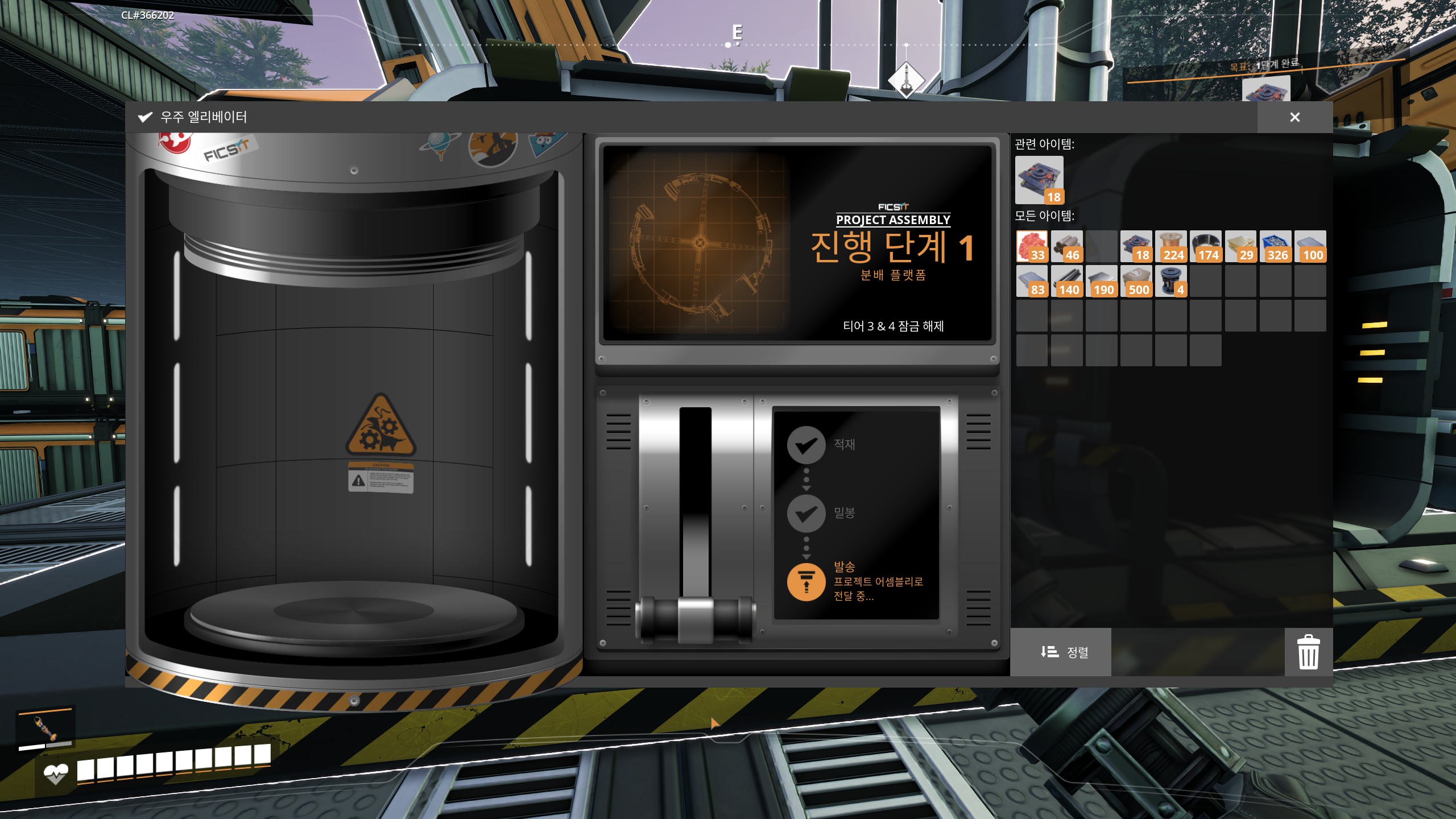 그러고서 25분을 기다리면 모두 다 완성되어 있습니다. 그걸 가져가 우주 엘레베이터에 적재해주면 이제 티어 1,2 마무리가 되고, 2단계 발사를 준비하게 됩니다. 티어 3, 4도 열리게 되죠.