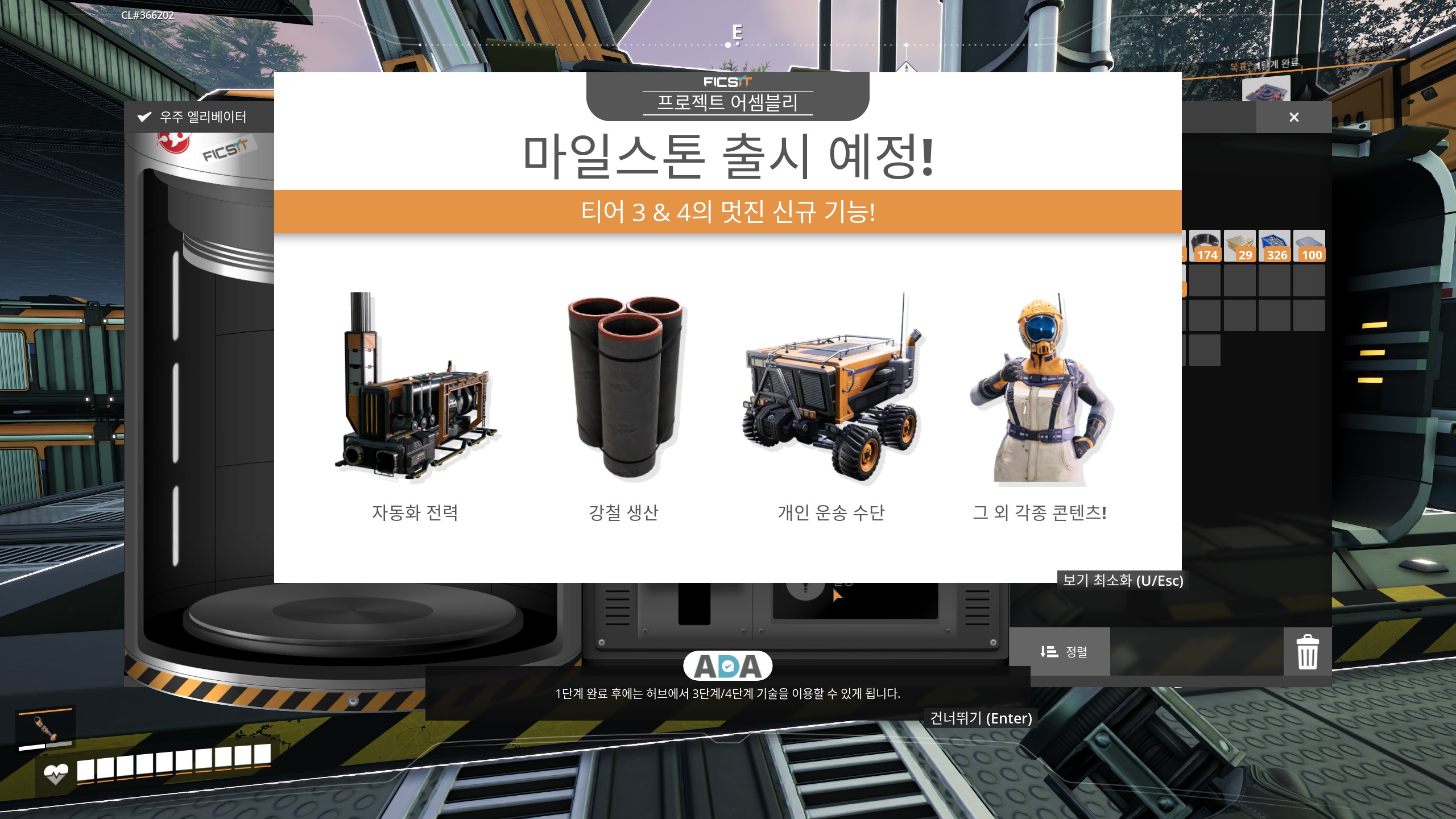 이렇게 티어 1, 2가 모두 끝나고 우주 엘레베이터 1단계까지 완료하였습니다.